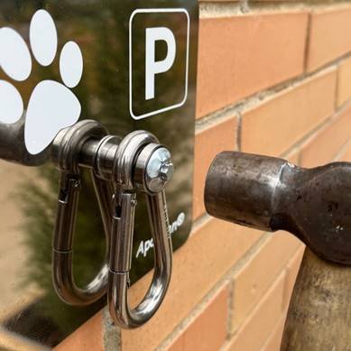 nuestras placas APARKAN para que las mascotas esperen tranquilamente y con seguridad